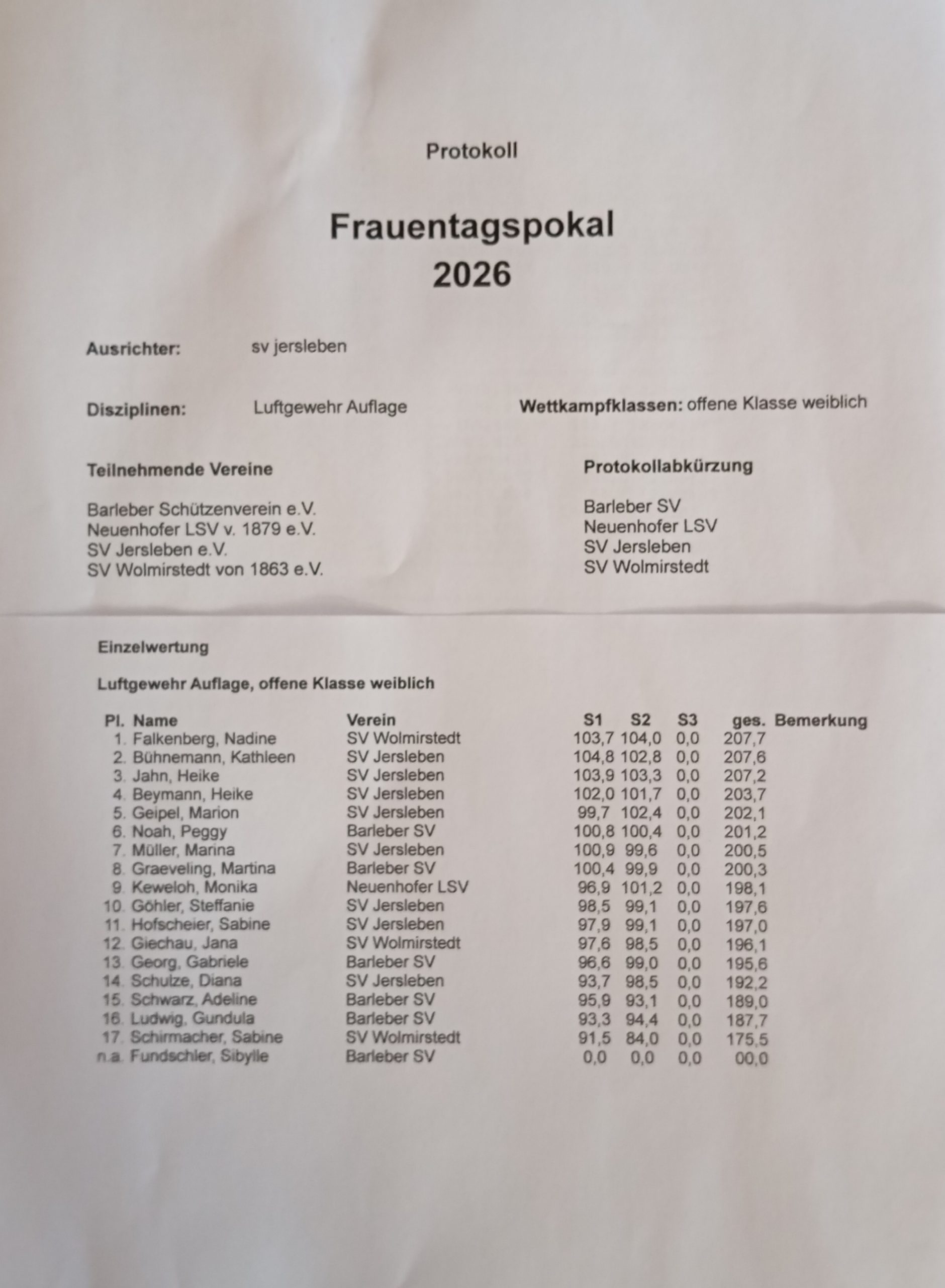 Letzte Wettkampfauswertung: